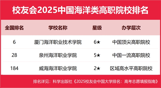 廈門海洋職業(yè)技術(shù)學(xué)院勇奪2025中國(guó)海洋類高職院校排名第一,泉州海洋職業(yè)學(xué)院第二