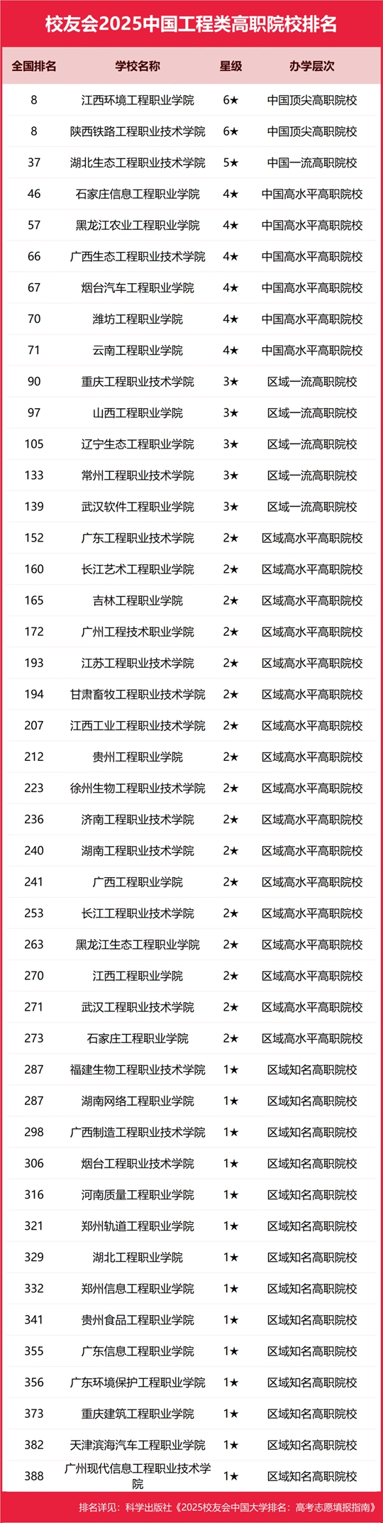 江西環(huán)境工程職業(yè)學院、陜西鐵路工程職業(yè)技術學院勇奪2025中國工程類高職院校排名第一,湖北生態(tài)工程職業(yè)技術學院前三