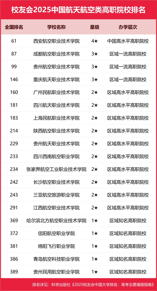 西安航空職業(yè)技術(shù)學(xué)院勇奪2025中國航天航空類高職院校排名第一,貴州航空職業(yè)技術(shù)學(xué)院前三