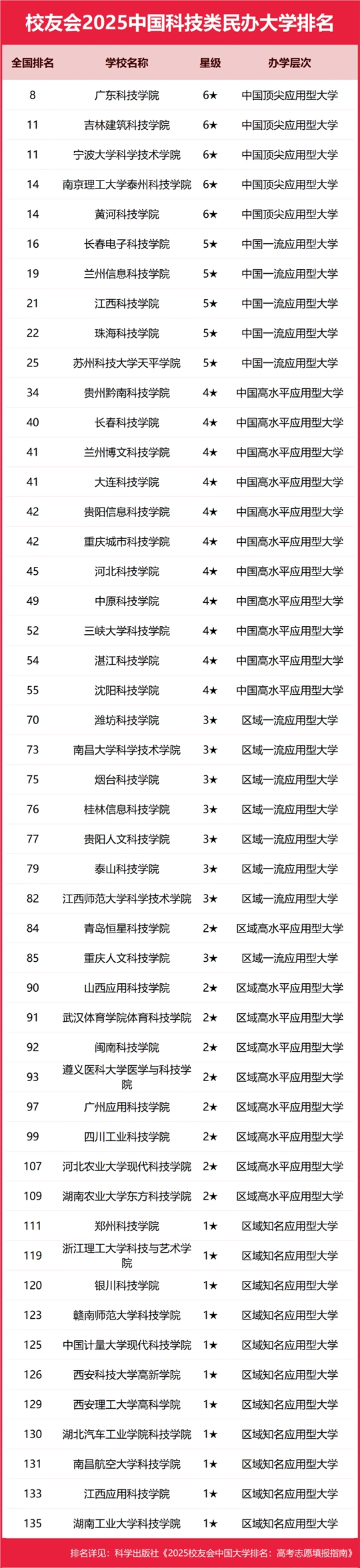 廣東科技學院位列2025中國科技類民辦大學排名榜首,吉林建筑科技學院、寧波大學科學技術學院前三