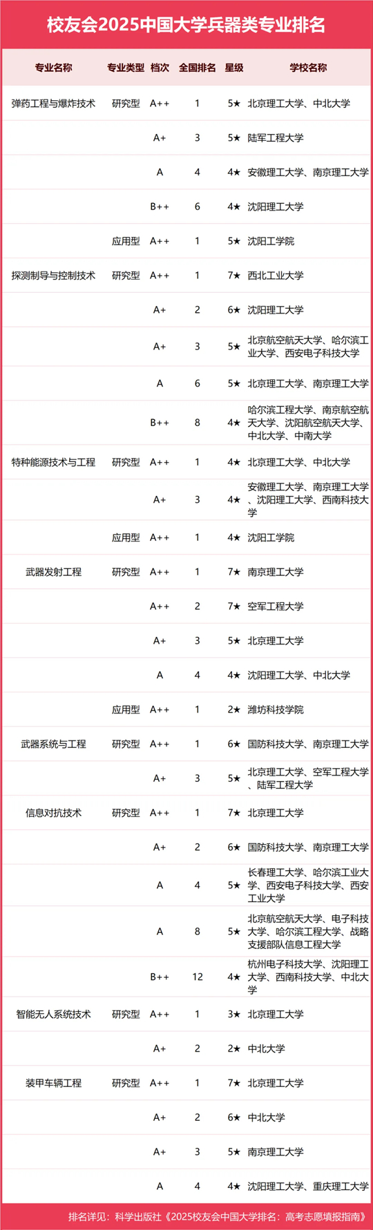 校友會(huì)2025中國(guó)大學(xué)兵器類專業(yè)排名(應(yīng)用型)