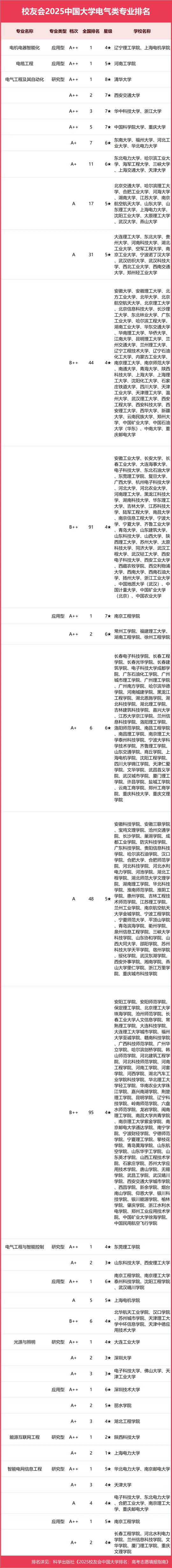 校友會(huì)2025中國(guó)大學(xué)電氣類專業(yè)排名(應(yīng)用型)