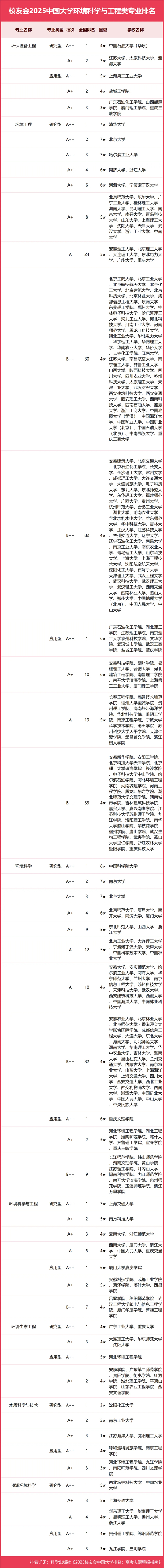 校友會2025中國大學(xué)環(huán)境科學(xué)與工程類專業(yè)排名(研究型)