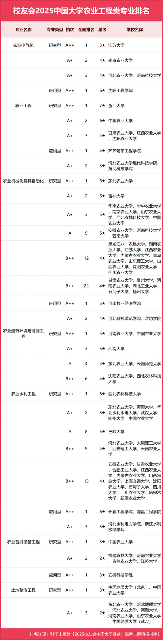 校友會(huì)2025中國大學(xué)農(nóng)業(yè)工程類專業(yè)排名(研究型)