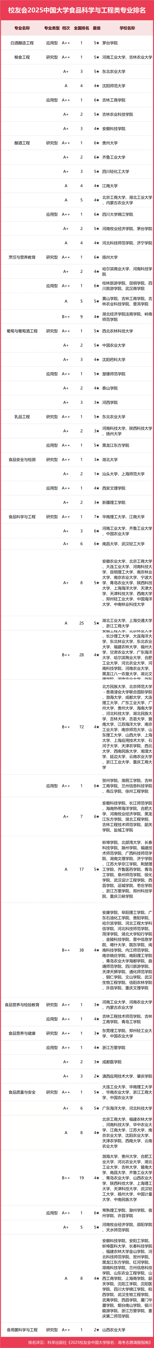 校友會(huì)2025中國(guó)大學(xué)食品科學(xué)與工程類專業(yè)排名(研究型)