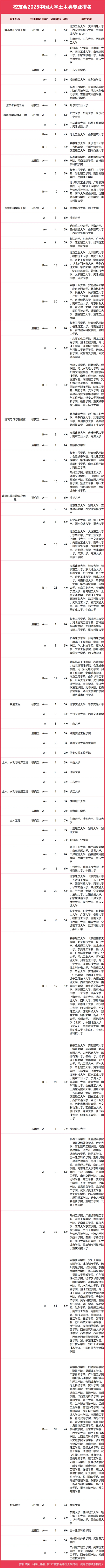 校友會2025中國大學(xué)土木類專業(yè)排名(研究型)