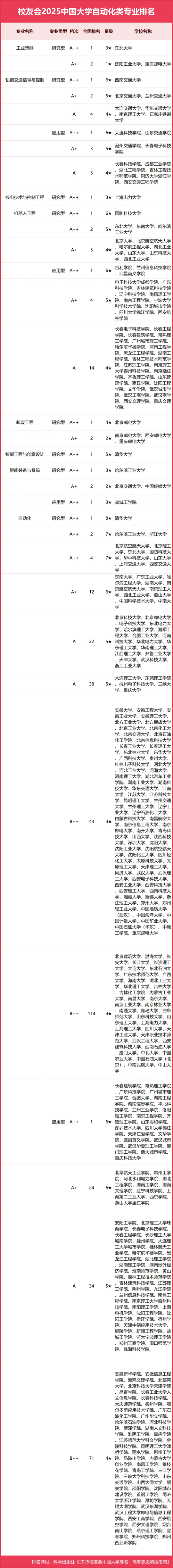 校友會2025中國大學(xué)自動化類專業(yè)排名(研究型)