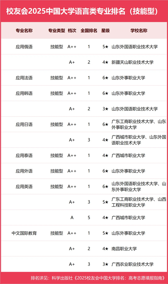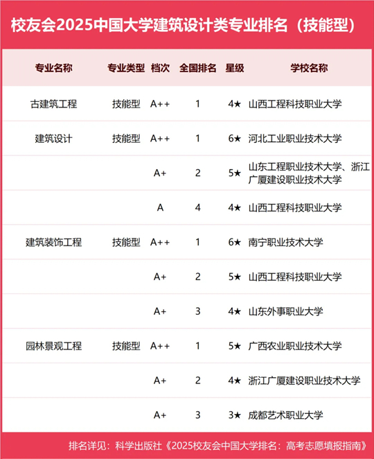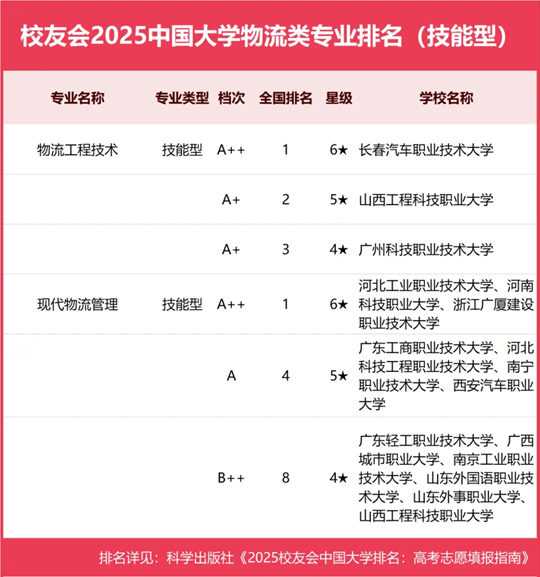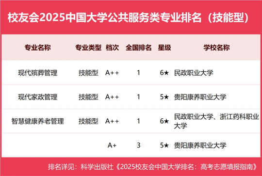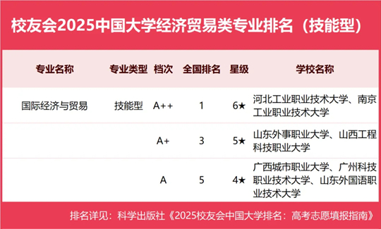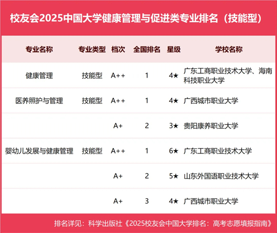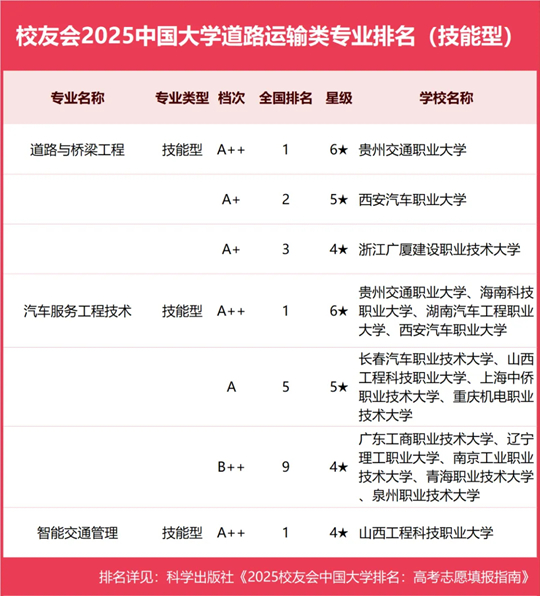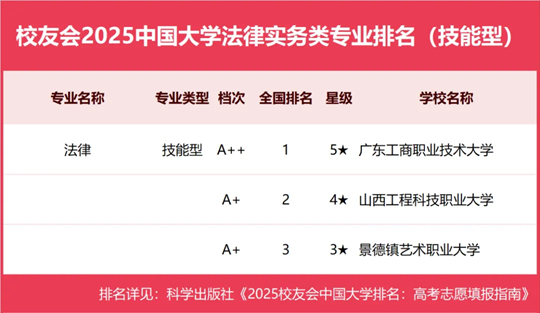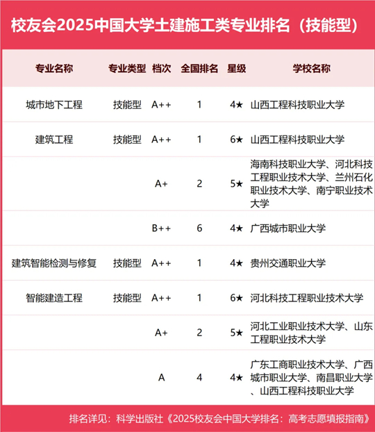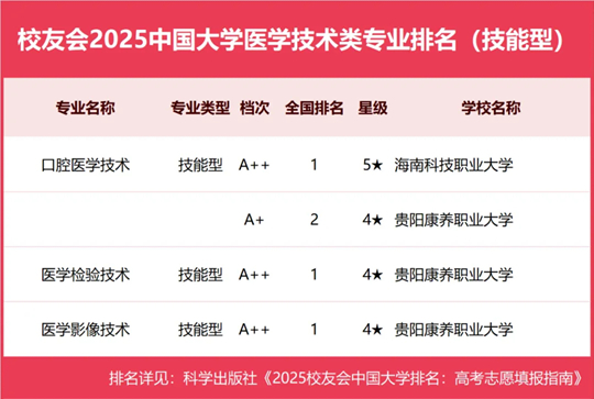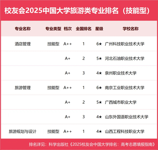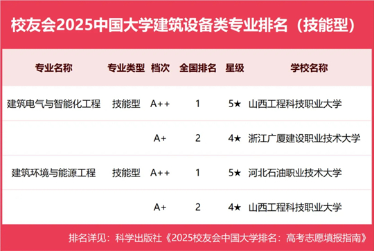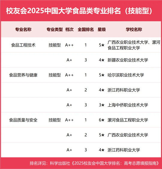 在校友會2025中國大學(xué)一流專業(yè)排名(技能型)中,深圳職業(yè)技術(shù)大學(xué)、海南科技職業(yè)大學(xué)、浙江機(jī)電職業(yè)技術(shù)大學(xué)、金華職業(yè)技術(shù)大學(xué)、河北科技工程職業(yè)技術(shù)大學(xué)、蘭州石化職業(yè)技術(shù)大學(xué)等48所高校的340個(gè)本科專業(yè)躋身2025年中國五星級(5★)以上技能型專業(yè)名單。