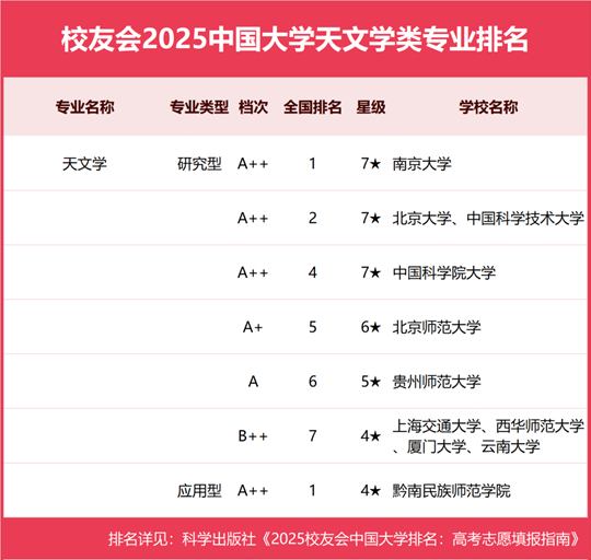 校友會(huì)2025中國(guó)大學(xué)天文學(xué)類專業(yè)排名(研究型)