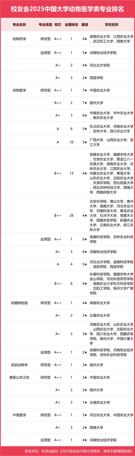 校友會2025中國大學(xué)動物醫(yī)學(xué)類專業(yè)排名(研究型)