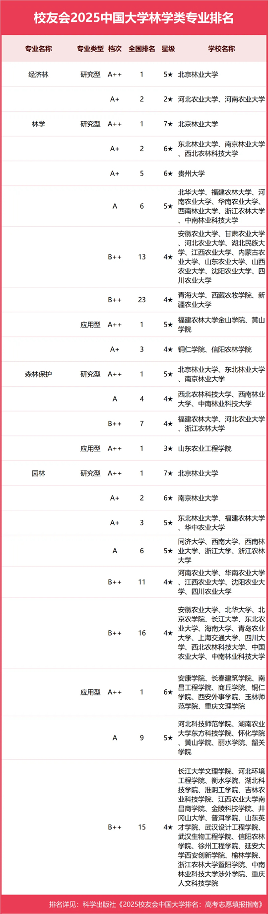 校友會(huì)2025中國(guó)大學(xué)林學(xué)類專業(yè)排名(研究型)