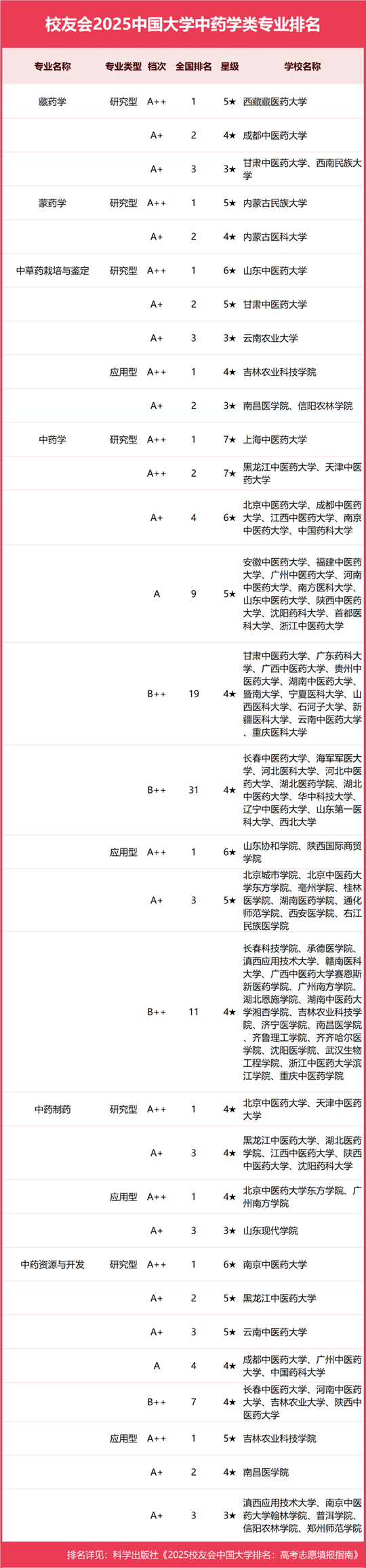 校友會2025中國大學(xué)中藥學(xué)類專業(yè)排名(應(yīng)用型)