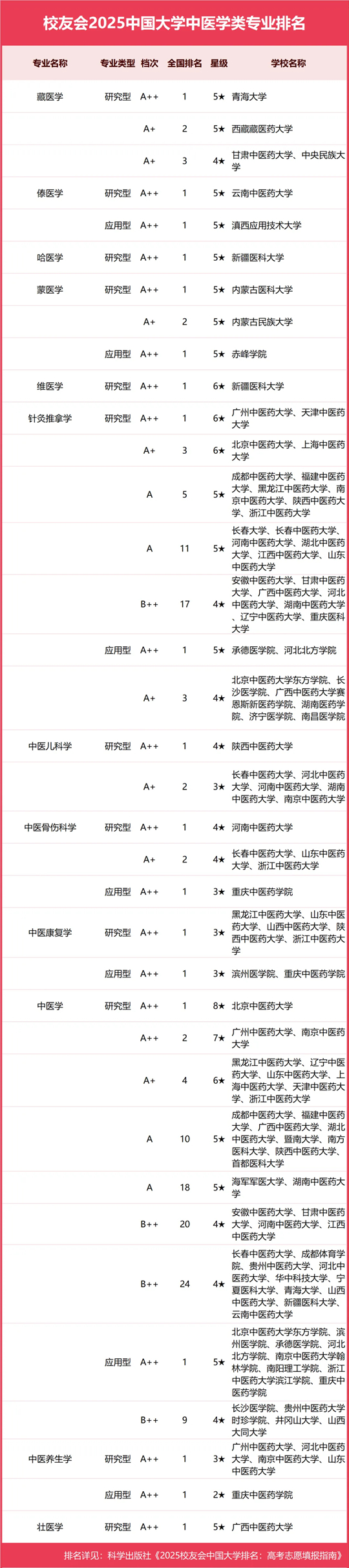 校友會(huì)2025中國大學(xué)中醫(yī)學(xué)類專業(yè)排名(研究型)