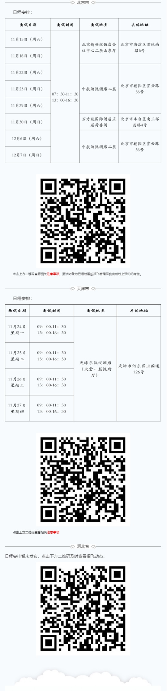 2026年,我校與中國(guó)國(guó)際航空公司在北京市、天津市、河北省開展校企合作招飛工作,預(yù)選初檢日程安排如下。