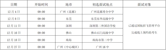 (二)預(yù)選初檢:登錄“國航招飛管理平臺(tái)”填寫信息、預(yù)約場次,已預(yù)約考生嚴(yán)格按照預(yù)約時(shí)間參加國航招飛辦公室組織的現(xiàn)場初檢面試(含飛行職業(yè)能力傾向測試、英語測試、面試等);