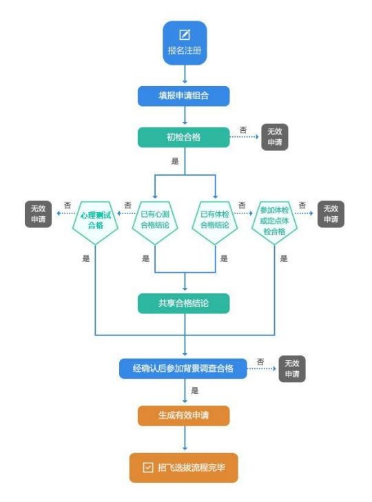 為幫助您在招飛選拔過程中節(jié)約時(shí)間和費(fèi)用,便于您更好地備考,同時(shí)讓您有機(jī)會(huì)在更多的合格申請(qǐng)組合中選擇確認(rèn)有效招飛申請(qǐng),系統(tǒng)對(duì)部分環(huán)節(jié)的結(jié)論在特定情況下設(shè)定了結(jié)論共享。請(qǐng)注意,這里的結(jié)論共享特指申請(qǐng)組合之間共享。