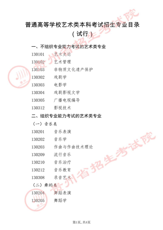 貴州:普通高等學(xué)校藝術(shù)類本科考試招生專業(yè)目錄(試行)