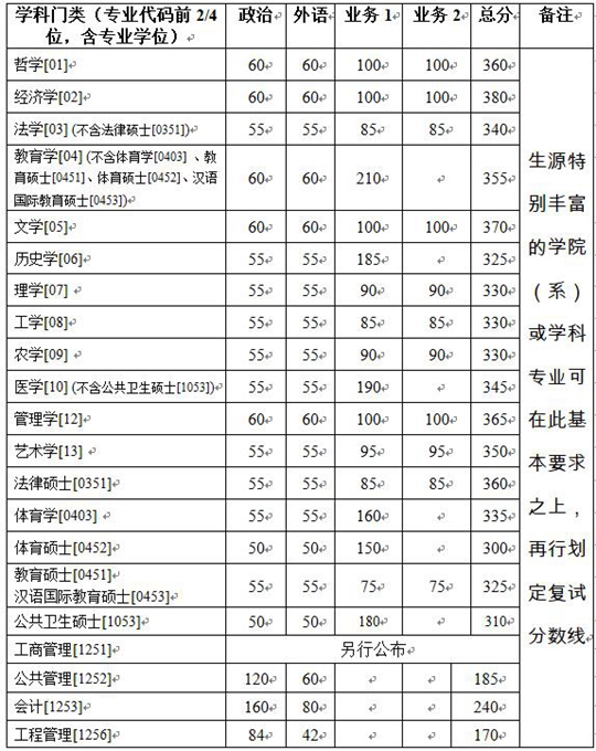 。ㄎ澹﹪疑贁(shù)民族高層次骨干人才培養(yǎng)計(jì)劃考生同時(shí)滿足以下成績要求的考生可參加復(fù)試: