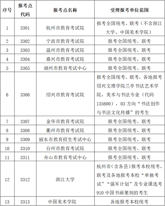 我省共設(shè)置13個(gè)碩士研究生報(bào)考點(diǎn),具體如下: