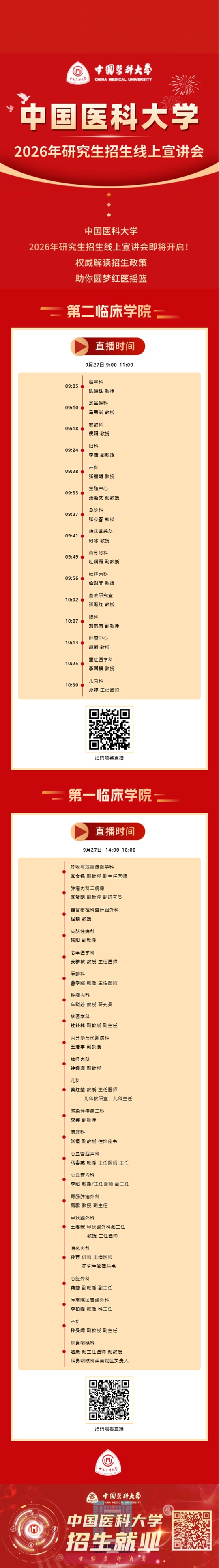 中國醫(yī)科大學(xué)2026年研究生招生線上宣講會