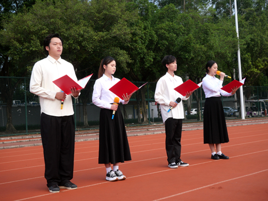 今年是新中國(guó)成立76周年,也是中國(guó)人民抗日戰(zhàn)爭(zhēng)暨世界反法西斯戰(zhàn)爭(zhēng)勝利80周年,學(xué)生藝術(shù)團(tuán)司儀隊(duì)激昂地朗誦《民族豐碑》“我仰起頭,向著遠(yuǎn)去的戰(zhàn)爭(zhēng)凝望……”,引領(lǐng)廣大師生共同銘記歷史、緬懷先烈、珍愛(ài)和平、開(kāi)創(chuàng)未來(lái)。