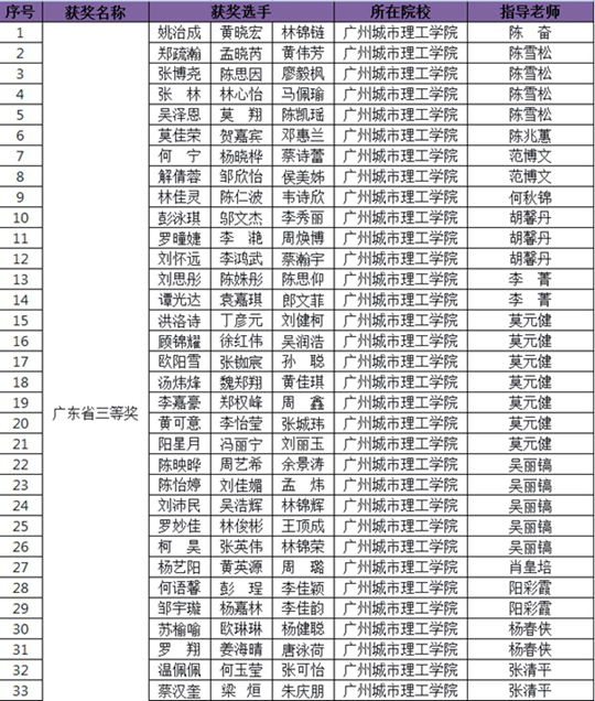 三等獎(jiǎng)及以上獲獎(jiǎng)名單(陳雪松 提供)