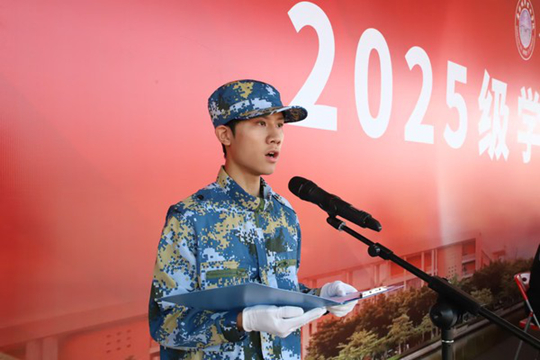 汽車(chē)與交通工程學(xué)院2025級(jí)學(xué)生招冠宏代表全體參訓(xùn)學(xué)生鄭重承諾:以軍人標(biāo)準(zhǔn)嚴(yán)格自律,聽(tīng)從指揮、令行禁止,學(xué)習(xí)教官過(guò)硬作風(fēng),把每一次訓(xùn)練都當(dāng)作對(duì)意志的磨礪;嚴(yán)守訓(xùn)練紀(jì)律,認(rèn)真完成每項(xiàng)任務(wù),在訓(xùn)練中傳承偉大抗戰(zhàn)精神,展現(xiàn)新時(shí)代青年的責(zé)任與擔(dān)當(dāng);勇于吃苦奮斗,不畏烈日與疲憊,在自我超越中踐行“強(qiáng)國(guó)有我”的青春誓言。