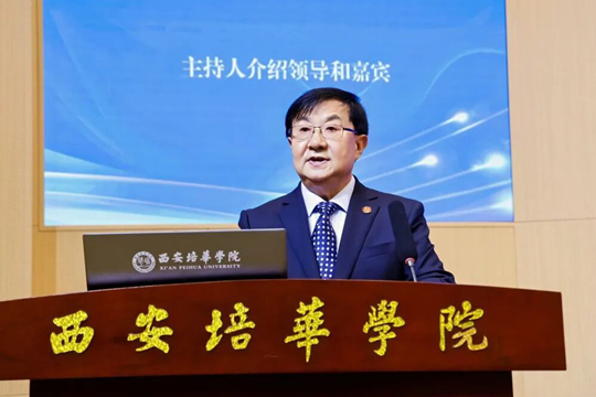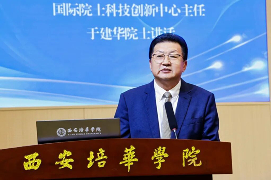 英國(guó)皇家學(xué)會(huì)工藝院院士、國(guó)際院士科技創(chuàng)新中心主任、西安培華學(xué)院名譽(yù)校長(zhǎng)于建華院士在致辭中介紹了國(guó)際院士科技創(chuàng)新中心的基本情況,他指出國(guó)際院士科技創(chuàng)新中心作為匯聚國(guó)內(nèi)外頂尖院士的高端平臺(tái),目前已有數(shù)百位兩院及國(guó)際院士加盟,致力于打造“人才庫(kù)、項(xiàng)目庫(kù)、資本庫(kù)”,加速超級(jí)項(xiàng)目落地。他希望西安培華學(xué)院能積極承擔(dān)科技創(chuàng)新重任,加快成果轉(zhuǎn)化,推動(dòng)技術(shù)“引進(jìn)來(lái)”與“走出去”,打造民營(yíng)高校科技創(chuàng)新典范。