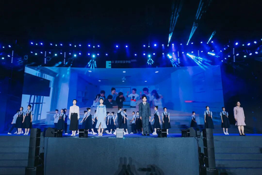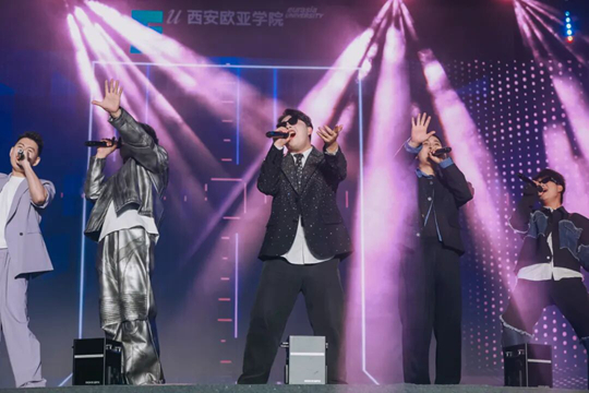 隨后,胡建波和副校長李正、吉他社的同學一起,演唱了影響一代人的搖滾金曲《藍蓮花》,用音樂致敬30年的青春。歌聲響起,燈光星海閃爍。那一刻,音樂不再只是旋律,而是一種力量——來自歐亞的信念與精神。歌聲穿越時間,連接了30年的追夢者,也照亮了此刻的青年面龐。