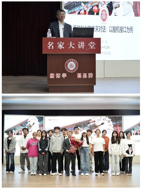 29日晚上,賽事總決賽評委、北京大學(xué)哲學(xué)系教授周程在圖書館小禮堂為師生帶來了主題為《哲學(xué)與AI的未來對話》的專題講座,現(xiàn)場學(xué)術(shù)氛圍濃厚,互動熱烈。講座聚焦人工智能時代的核心哲學(xué)命題,周程教授從腦機接口的技術(shù)原理切入,系統(tǒng)介紹了其分類方式與信號采集機制,并展望了其在教育認知與醫(yī)療康復(fù)等領(lǐng)域的應(yīng)用潛力。