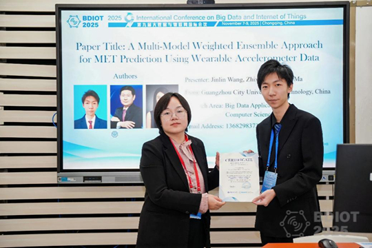 11月8日,從第九屆大數(shù)據(jù)與物聯(lián)網(wǎng)國際會議(BDIOT 2025)傳來喜訊,廣州城市理工學院管理學院2022級大數(shù)據(jù)管理與應(yīng)用專業(yè)王瑾藺同學以第一作者身份發(fā)表題為《A
