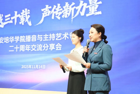 2025年11月14日,“跨越三十載·聲傳新力量”西安培華學(xué)院播音與主持藝術(shù)專業(yè)二十周年交流分享會在明德樓報告廳舉行;顒友埮c學(xué)校結(jié)緣30載的中央廣播電視總臺播音指導(dǎo),原中央電視臺《新聞聯(lián)播》欄目主播、播音部主任李瑞英作為特邀主講嘉賓重返培華,為現(xiàn)場三百余名師生帶來一場高規(guī)格的學(xué)術(shù)與思想盛宴。