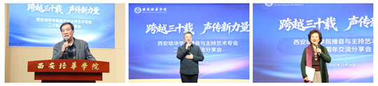 陜西廣播電視臺播音指導(dǎo)、陜西省第九屆\第十屆政協(xié)委員陳愛美,陜西廣播電視臺播音指導(dǎo)、中國播音主持“金話筒”獎獲得者包志堅,西安廣播電視臺原副臺長、二級教授、播音指導(dǎo)嚴(yán)一寧,西安培華學(xué)院理事長姜波,黨委副書記、副校長姚文靜,傳媒與設(shè)計學(xué)院、女子學(xué)院、黨委宣傳部相關(guān)負(fù)責(zé)人及播音與主持藝術(shù)專業(yè)歷屆校友、全體專任教師、學(xué)生代表出席活動。傳媒與設(shè)計學(xué)院教師賈登銀主持活動。