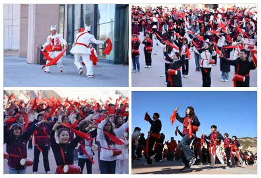 場景互動體驗課中激情教學(xué)陜北腰鼓,紅色的腰鼓系在腰間,鮮艷的綢帶隨風(fēng)飄揚。學(xué)員們認(rèn)真學(xué)習(xí)基本動作和技巧,敲打出激昂有力的鼓點。歡快的鼓聲中洋溢出燦爛的笑容,紅色文化在互動傳習(xí)中代代相傳。