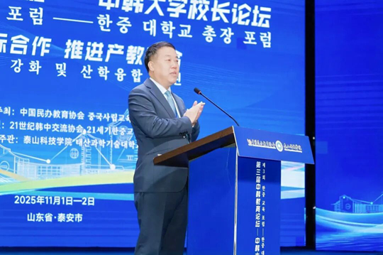 11月1日,在教育部的指導(dǎo)支持下,由中國(guó)民辦教育協(xié)會(huì)主辦、21世紀(jì)韓中交流協(xié)會(huì)協(xié)辦、泰山科技學(xué)院承辦的第三屆中韓教育論壇——中韓大學(xué)校長(zhǎng)論壇在山東泰安隆重開(kāi)幕。
