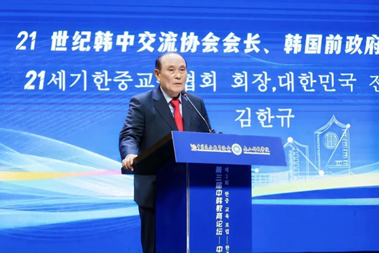 21世紀(jì)韓中交流協(xié)會(huì)會(huì)長(zhǎng)、韓國(guó)前政府部長(zhǎng)金漢圭回顧兩國(guó)友好交往歷史,指出論壇是推動(dòng)大學(xué)間實(shí)質(zhì)性合作的重要平臺(tái)。
