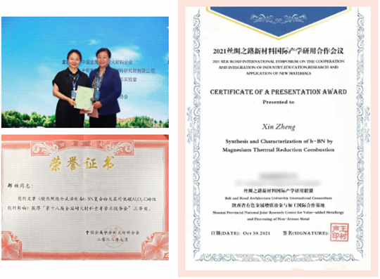 憑借在材料科學領域的卓越表現(xiàn),鄭欣還收獲了一系列令人矚目的成果:她曾作為核心成員參與國家自然科學基金項目、省重點研發(fā)計劃等省部級科研項目3項;發(fā)表學術論文10余篇,其中在材料領域權威SCI期刊發(fā)表論文6篇,1篇獲得期刊編輯推薦;先后在“絲綢之路國際產(chǎn)業(yè)合作與融合學術研討會”“全國耐火原料學術交流會”等國際國內學術會議作主題報告,并在“第十八屆全國耐火材料青年學術報告會”獲會議論文三等獎。