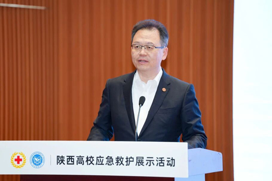 陜西省紅十字會黨組成員、專職副會長李志剛在致辭中強調,高校作為人才培養(yǎng)主陣地,肩負著應急救護知識普及與技能傳承的重要使命。他援引《中華人民共和國紅十字會法》指出,紅十字應急救護與青少年工作是法定職責,亟需通過“五大行動”構建高校應急能力建設體系:“組織強基”行動推進基層組織標準化建設,“組網(wǎng)協(xié)作”行動培育青年傳承力量,“生命教育”行動融入思政教育主渠道,“志愿服務”行動促進專業(yè)與實踐融合,“安全守護”行動筑牢校園安全防線。