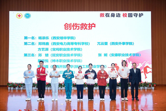本次展示活動創(chuàng)新采用“專題培訓+技能展示+主題演講”三維模式,設置實操競技、情景模擬等多維度考核環(huán)節(jié),全方位考核參賽隊伍的理論功底和協(xié)同能力。經過激烈角逐,分別評選出心肺復蘇+AED單項獎一、二、三等獎;創(chuàng)傷救護單項獎一、二、三等獎;主題演講單項獎一、二、三等獎;團體一、二、三等獎及優(yōu)秀組織獎。其中,西安培華學院代表隊獲團體二等獎及優(yōu)秀組織單位稱號。醫(yī)學院楊添樂同學摘得創(chuàng)傷救護組一等獎,張璐同學在成人心肺復蘇(CPR+AED)項目獲三等獎,杜元元同學獲主題演講三等獎。