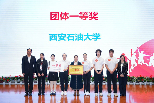 共青團陜西省委二級巡視員王軍民為獲得團體二等獎的隊伍頒獎