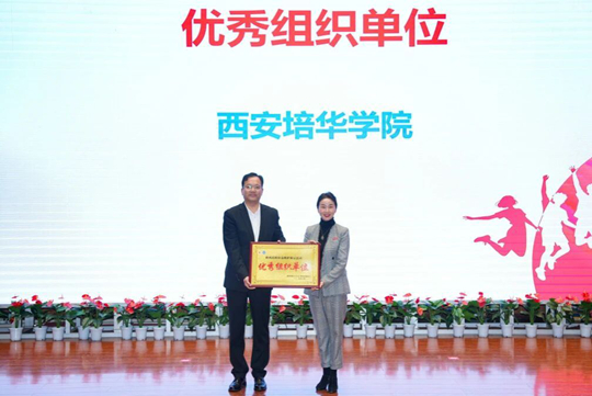 西安培華學院理事長姜波為獲得主題演講單項獎選手頒獎