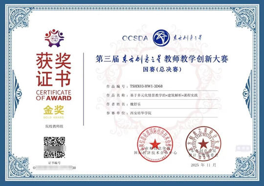 | 從課堂到國(guó)賽金獎(jiǎng)!西安培華學(xué)院魏舒樂老師《建筑解析》課程創(chuàng)新實(shí)踐彰顯教學(xué)硬實(shí)力! |