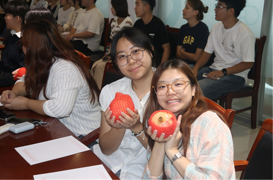 培華師生向新加坡交流學(xué)生贈送新鮮石榴,祝福兩校緊密聯(lián)系,合作交流結(jié)出豐碩成果。