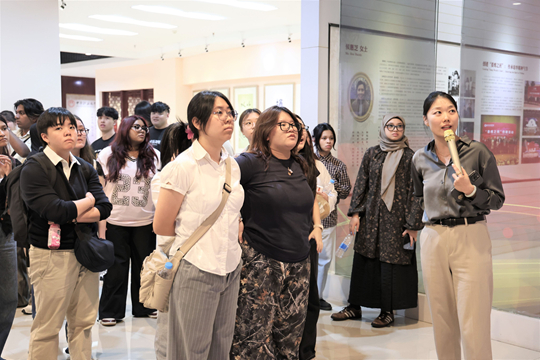 訪問期間,代表團在校方陪同下參觀了學(xué)術(shù)交流中心與培華藝術(shù)館。學(xué)術(shù)交流中心陳列了傳媒與設(shè)計學(xué)院2025屆優(yōu)秀畢業(yè)設(shè)計作品,涵蓋視覺傳達(dá)設(shè)計、工藝美術(shù)、服裝與服飾設(shè)計等多個專業(yè),獲得新方師生高度評價。藝術(shù)館展出的漆藝作品與甲骨文展覽,也彰顯了西安培華學(xué)院的文化底蘊與專業(yè)特色。