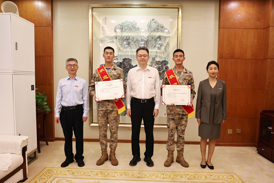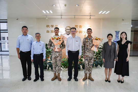 姜波理事長(zhǎng)深情表示:“你們?cè)陂啽?xùn)練場(chǎng)上揮灑汗水,以鏗鏘步伐走過(guò)天安門(mén)廣場(chǎng),不僅展現(xiàn)了新時(shí)代軍人的風(fēng)采,更把培華人‘自強(qiáng)不息、開(kāi)拓前進(jìn)’的精神帶到了祖國(guó)的心臟!”他勉勵(lì)兩位校友不忘初心,把部隊(duì)的優(yōu)良作風(fēng)融入今后工作,持續(xù)發(fā)揚(yáng)吃苦耐勞、拼搏向上的品質(zhì),成為廣大青年特別是00后的學(xué)習(xí)楷模。