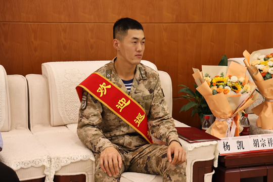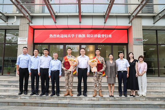 初秋的培華校園丹桂飄香、陣陣秋雨送來(lái)絲絲涼爽。9月11日清晨,西安培華學(xué)院校園內(nèi)電子屏“熱烈歡迎楊凱、胡宗祥參加九三閱兵凱旋歸來(lái)”格外耀眼。剛剛參加完“九三閱兵”的2022屆校友楊凱、2024屆校友胡宗祥身著筆挺戎裝返回母校,與師長(zhǎng)和學(xué)弟學(xué)妹分享成長(zhǎng)經(jīng)歷。