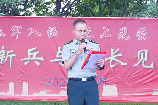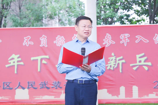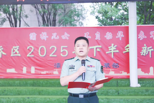 會上,區(qū)人武部政治委員李海峰宣讀新兵入伍命令,新兵們挺拔的身姿更顯堅定。