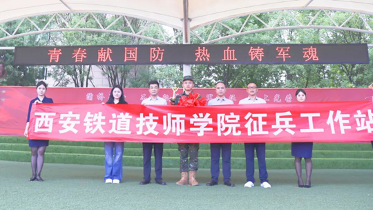 西安鐵道技師學(xué)院黨委書記、校長左永煥,黨委副書記、副校長周造華以及征兵工作站站長趙磊等人同入伍的新兵合影留念,并叮囑他們,珍惜從學(xué)校大學(xué)生入伍的難得機遇,建功軍營,報效國家,為母校增光添彩!