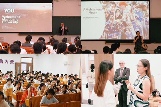 簽約儀式結(jié)束后,麥考瑞大學(xué)代表團(tuán)面向管理學(xué)院、經(jīng)濟(jì)學(xué)院及國(guó)際商學(xué)院學(xué)生舉辦本碩連讀項(xiàng)目宣講會(huì),詳細(xì)解讀赴麥考瑞大學(xué)留學(xué)的優(yōu)勢(shì)。王桃以“你好澳大利亞——打開(kāi)國(guó)際視野的第一步”為主題,圍繞澳中緊密的經(jīng)貿(mào)與教育關(guān)系,激勵(lì)學(xué)生通過(guò)出國(guó)留學(xué)拓寬全球視野、實(shí)現(xiàn)學(xué)術(shù)與職業(yè)更高層次的發(fā)展。蔣婷婷則重點(diǎn)介紹了麥考瑞大學(xué)商學(xué)院,向?qū)W生展示麥考瑞大學(xué)的學(xué)術(shù)優(yōu)勢(shì)與學(xué)習(xí)體驗(yàn):麥考瑞商學(xué)院是全澳排名第2的商學(xué)院,獲得AACSB、AMBA雙重認(rèn)證。市場(chǎng)營(yíng)銷(xiāo)、金融學(xué)、管理學(xué)等多個(gè)商科專(zhuān)業(yè)均位列全球前50位,且主校區(qū)毗鄰“悉尼硅谷”——麥考瑞科技創(chuàng)新園區(qū),是谷歌、微軟等數(shù)百家全球知名企業(yè)在南半球的總部所在地,為學(xué)生提供了豐富的實(shí)習(xí)、就業(yè)和創(chuàng)業(yè)的機(jī)會(huì)。