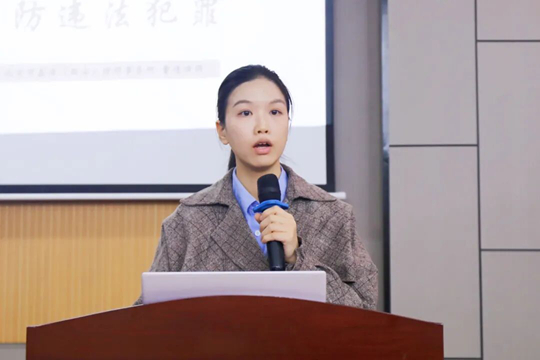 在“預(yù)防違法犯罪”板塊,曹律師先講解了“什么是犯罪”,從法律層面清晰闡釋了犯罪的定義及構(gòu)成要件,讓同學(xué)們對(duì)犯罪有了初步的認(rèn)知。接著,又列舉了常見的青少年違法犯罪行為,如:因沖動(dòng)引發(fā)的故意傷害、涉及網(wǎng)絡(luò)的幫助信息網(wǎng)絡(luò)犯罪活動(dòng)等。最后,曹律師著重闡述了“未成年人應(yīng)如何預(yù)防犯罪”,鼓勵(lì)同學(xué)們認(rèn)真學(xué)習(xí)法律知識(shí),樹立正確的價(jià)值觀和是非觀,在生活中學(xué)會(huì)控制情緒,謹(jǐn)慎交友,遠(yuǎn)離不良誘惑,時(shí)刻以法律規(guī)范自己的行為。